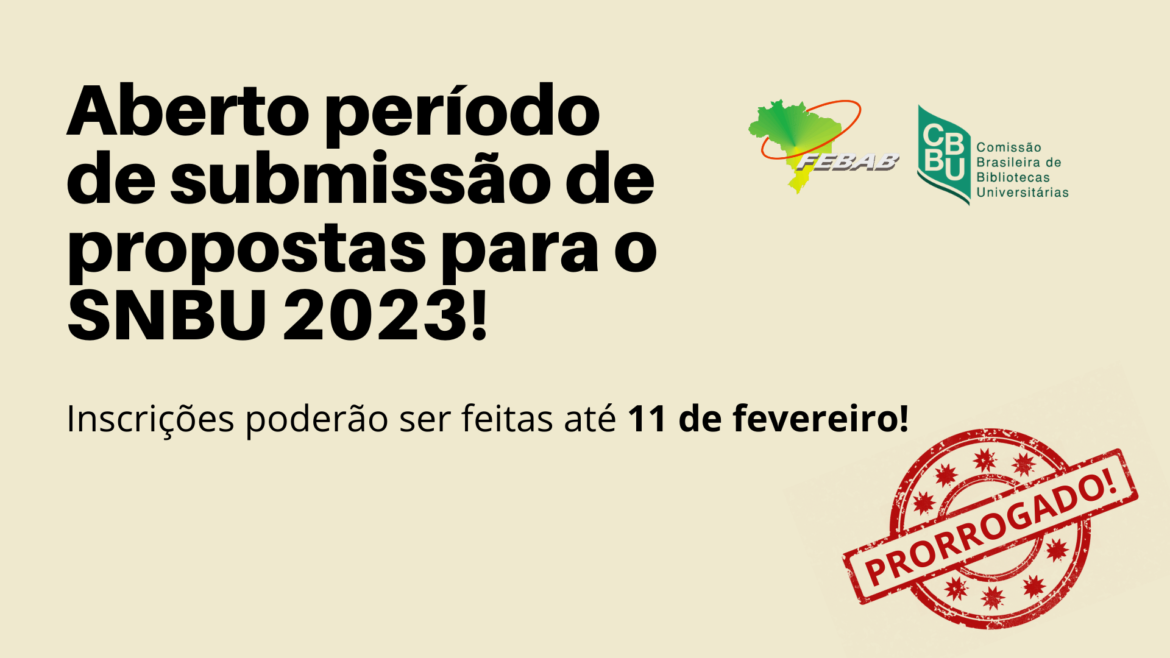 O Seminário Nacional de Bibliotecas Universitárias é um dos eventos de mais tradição dentro da área da Biblioteconomia, especificamente contemplando as bibliotecas universitárias, sendo organizado desde 1978. Desta forma, a FEBAB, por meio de sua Comissão Brasileira de Bibliotecas Universitárias (CBBU) torna público o presente edital e convida as bibliotecas de instituições de ensino superior brasileiras a submeterem suas propostas para organização e realização da 22ª edição do evento, a ser realizado em 2023, em um sistema de cogestão junto da FEBAB e CBBU.