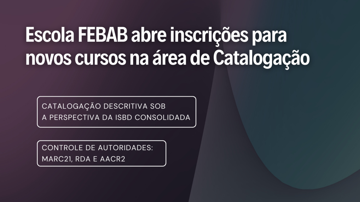 […] Escola FEBAB iniciou 2024 com dois cursos online de Catalogação: Catalogação Descritiva sob a perspectiva da ISBD Consolidada, ministrado pelo Prof. Fernando […]